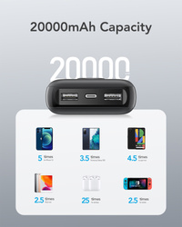 Zastosowanie cenionej na rynku baterii litowo-polimerowej gwarantuje wolniejsze rozładowywanie się power banka. Pojemność na poziomie 20 000 mAh pozwoli Ci kilkukrotnie uzupełnić energię w telefonie, tak że przyda się w trasie, kiedy nie ma stałego dostępu do gniazdek elektrycznych.