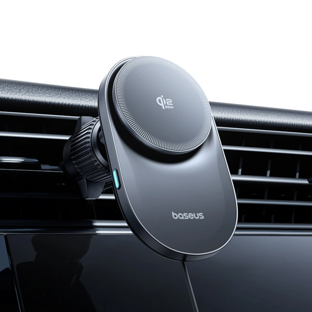 Baseus PrimeTrip VC2 Pro to zaawansowany uchwyt magnetyczny z bezprzewodowym ładowaniem Qi2.2, zaprojektowany do bezpiecznego i wydajnego użytkowania w samochodzie. Obsługuje szybkie ładowanie bezprzewodowe o mocy do 25 W i wykorzystuje aktywne chłodzenie z wbudowanym wentylatorem, aby utrzymać stabilną wydajność podczas jazdy. Mocne magnesy zapewniają precyzyjne pozycjonowanie telefonu i pewne trzymanie na kratce nawiewu. Smukła konstrukcja oraz regulowana głowica kulowa 360° pozwalają wygodnie ustawić telefon w pionie lub poziomie. To rozwiązanie dla kierowców, którzy oczekują stabilności, chłodzenia i szybkiego ładowania w jednym urządzeniu.