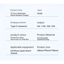 Ładowarka bezprzewodowa 3 w 1 VEGER Y9. Dedykowana do ładowania indukcyjnego smartfona, Apple Watch'a oraz słuchawek AirPods.