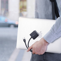 Adattatore di marca Ugreen con connettore USB 3.0 per il collegamento di HDD e SSD (2,5'' e 3,5'') con interfaccia SATA a un computer. Il circuito integrato di ultima generazione che supporta la tecnologia USB 3.0 è garanzia di trasferimento dati super veloce, affidabilità e sicurezza delle tue apparecchiature. Non sono necessari driver per utilizzare questo adattatore, funziona come Plug & Play.