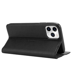 Elegant Crong Case for iPhone 11 Pro with a magnetic flap. A magnetic clasp keeps the touchscreen flap closed and protects the Screen. The Folio Case is also equipped with a card pocket, where you can hide the necessary documents. It was made of high-quality ecological leather. Thanks to this, the Case looks very tasteful and is pleasant to the touch. Integrated Click-In backs provide additional protection of the housing during everyday use of the phone. Product features: Made of high-quality ecological leather. Screen cover with magnetic closure. Integrated Click-In backs for the Mobile phone. Internal card pocket. Hole for three cameras. Case compatible with Qi chargers