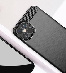 Carbon Case è una custodia resistente con finiture eleganti che imitano il metallo spazzolato . Una custodia realizzata con materiali di alta qualità ( TPU ) che protegge perfettamente il telefono da cadute, graffi o sporco. Assorbe gli urti e la speciale struttura all'interno dell'accessorio aiuta a distribuire la forza di un impatto. Inoltre, bordi rialzati attorno allo schermo e all'obiettivo della fotocamera e pulsanti ampi e reattivi .