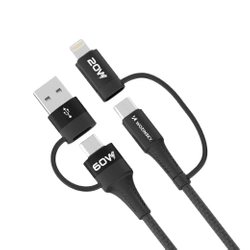 Cavo Wozinsky WNBAA 4in1 con connettori USB-C, USB-A e Lightning , potenza fino a 60W, lunghezza 1 m - nero
