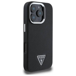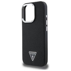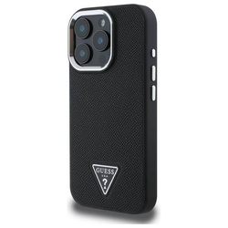 Etui pokryte jest wysokiej jakości skórą ekologiczną, która nadaje mu wyjątkowy wygląd. Charakterystyczny dla marki Guess trójkątny emblemat z logo, umieszczony subtelnie w dolnej części, podkreśla prestiż i klasę produktu. Dodatkowe akcenty w postaci metalowych wstawek na bocznych przyciskach oraz wokół obiektywu aparatu dodają etui niepowtarzalnego stylu. Oprócz walorów estetycznych, etui zapewnia solidną ochronę telefonu, chroniąc go przed zarysowaniami i przypadkowymi uszkodzeniami, gwarantując jednocześnie doskonały wygląd i funkcjonalność.
