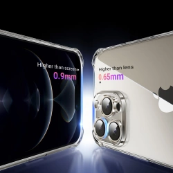 Etui zostało wyposażone we wzmocnione krawędzie, które zapewniają dodatkową ochronę urządzenia, skutecznie zabezpieczając je przed uszkodzeniami w wyniku upadków. Dzięki zastosowaniu podwójnej poduszki powietrznej etui absorbuje wstrząsy, minimalizując ryzyko ich uszkodzeń. Co więcej, etui jest o 0.9 mm wyższe od ekranu urządzenia i o 0.65 mm wyższe od soczewek aparatu, zapewniając jeszcze lepszą ochronę.