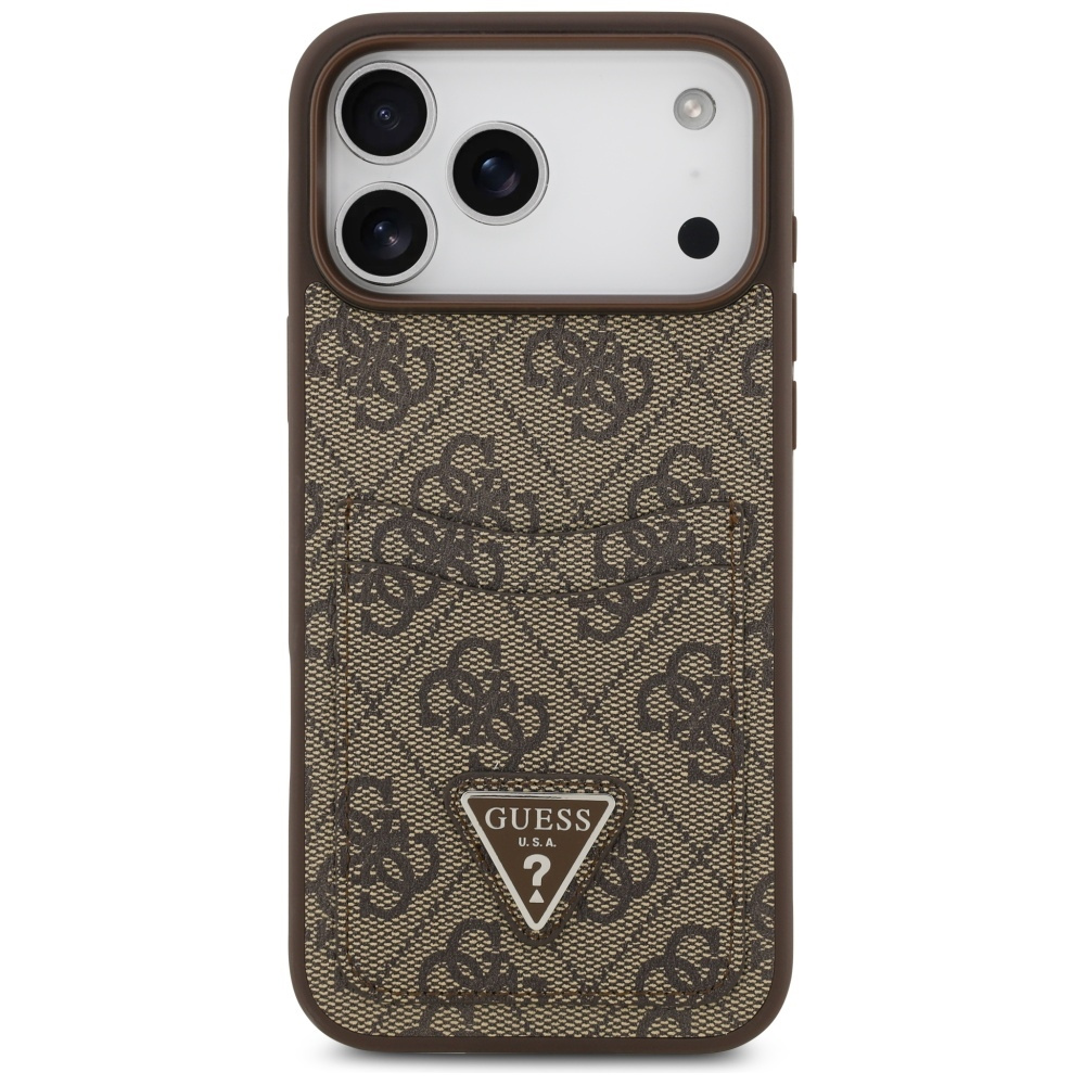 • Etui Guess 4G Double Card Triangle do    iPhone 17 Pro Max brązowy