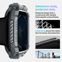 cover Apple WatchInnovativa protezione per . Rugged Armor Realizzata in materiale TPU resistente all'abrasione, durevole e flessibile. è rivestita in fibra di carbonio lucida, che crea un'elegante texture di carbonio. Rugged Armor Il prodotto si adatta perfettamente, è perfettamente funzionante, non limita l'accesso alle porte esterne e protegge efficacemente il dispositivo da graffi e cadute