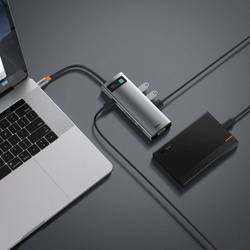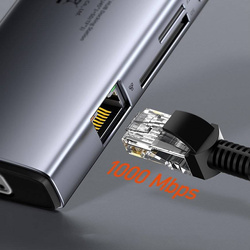 Baseus Metal Gleam HUB multifunzione 9in1 USB tipo C - 3x USB 3.2 Gen 1 5Gbps / USB tipo C PD 100W / VGA Full HD 60Hz / HDMI 4K 30Hz / czytnik kart TF i SD / RJ45 1Gbps grigio (CAHUB-CU0G)