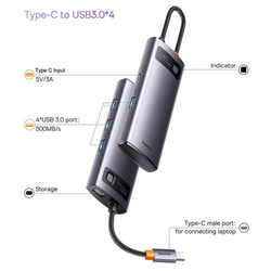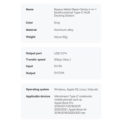 Baseus Metal Gleam Series 4 in 1 HUB Docking Station USB tipo C - 4 x USB 3.2 Gen. 1 (WKWG070013)