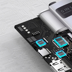• Baseus Metal Gleam Series 5-in-1 HUB multifunzione Type-C Docking Station Grigio 30Hz Versione Grigio