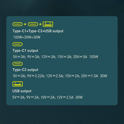 Baseus Qualcomm® Quick Charge ™ 5 Tecnologia Caricabatteria per auto multiporta a ricarica rapida C + C + U 160 W set Grigio (con cavo di ricarica rapida serie Baseus Xiaobai da Tipo-C a Tipo-C 100W (20V / 5A) 1m Nero)