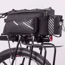 Presentazione della borsa da bici Rockbros A9-BK. Ha una grande capacità e può ospitare tutto ciò di cui hai bisogno. Ha due tasche esterne: una per una bottiglia d'acqua, l'altra per oggetti più piccoli come un portafoglio o un telefono. All'interno della borsa sono presenti numerosi scomparti, il che rende più facile mantenere tutto organizzato. Gli elementi riflettenti garantiscono la sicurezza. L'installazione sul bagagliaio è estremamente semplice e veloce.