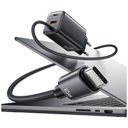 • Ładowarka sieciowa USAMS JC Series CC266 65W GaN Fast Charger 2xUSB-C 1xUSB-A czarny