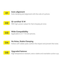 - Caricabatterie intelligente per i tuoi servizi: il supporto Baseus ha una funzione di ricarica wireless. Basta collegarlo a una fonte di alimentazione con un cavo USB/USB-C. Grazie all'efficiente bobina di induzione e ai moderni componenti elettronici, seleziona automaticamente i parametri di corrente in base alle esigenze del telefono in carica e lo carica istantaneamente