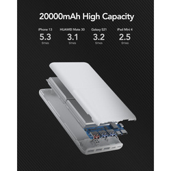Zastosowanie cenionej na rynku baterii litowo-polimerowej gwarantuje wolniejsze rozładowywanie się power banka. Pojemność na poziomie 20 000 mAh pozwoli Ci kilkukrotnie uzupełnić energię w telefonie, tak że przyda się w trasie, kiedy nie ma stałego dostępu do gniazdek elektrycznych.