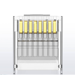 Spina modulare RJ45 8P8C cat. 6, 5, 5e viene utilizzato per le terminazioni dei cavi Internet a doppino intrecciato. La spina è utilizzata nelle telecomunicazioni e nelle apparecchiature informatiche. È il più diffuso come connettore base per la costruzione di reti di computer. Il prodotto è stato rifinito con una piastra in ferro nichelato e contatti in rame placcato oro - questo impedisce al materiale di ossidarsi. Il set comprende 10 pezzi.
