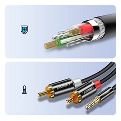 Un cavo audio analogico della società Ugreen con una presa mini jack stereo da 3,5 mm su un'estremità e due prese RCA sull'altra. Ti consente di collegare il tuo telefono, smartphone o altro dispositivo ad apparecchiature audio.