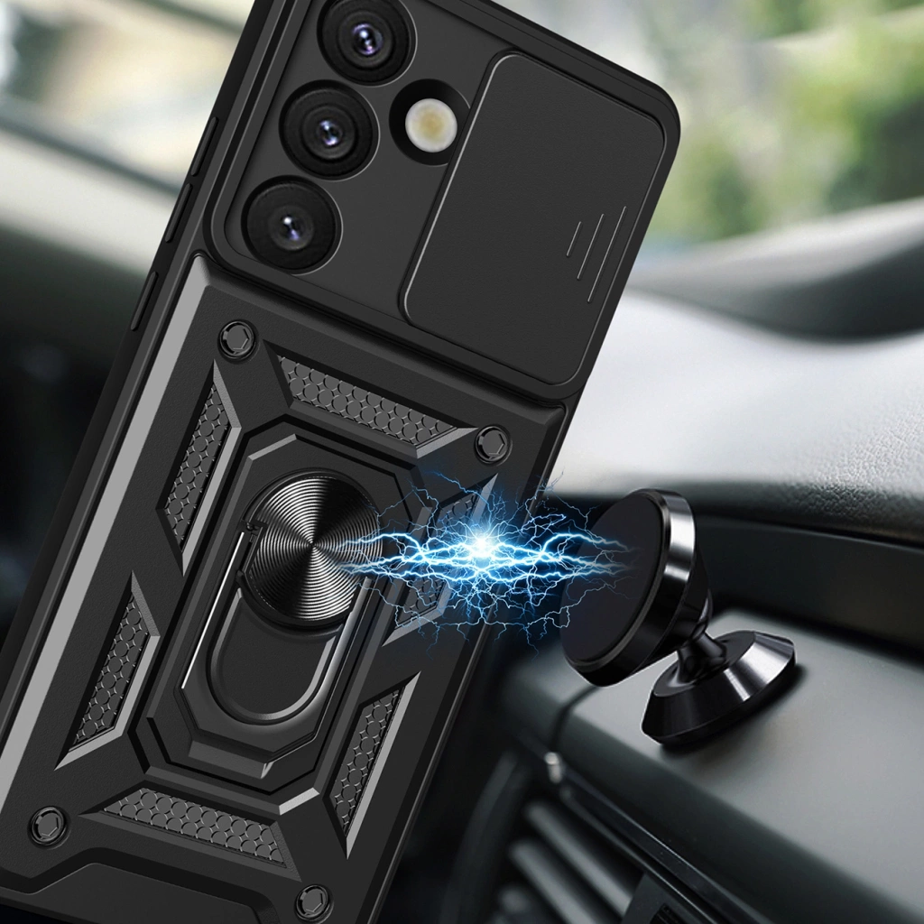 Hybrid Armor Camshield to solidne etui zaprojektowane z myślą o skutecznej ochronie Samsung Galaxy S26 Ultra w codziennym użytkowaniu. Wzmocniona konstrukcja z dwóch materiałów chroni telefon przed zarysowaniami i skutkami upadków. Zintegrowana osłona aparatu zabezpiecza soczewki, gdy nie są używane, a metalowy ring poprawia pewność chwytu. Dodatkowo ring może pełnić funkcję podstawki, ułatwiając korzystanie z ekranu bez trzymania telefonu w dłoni. To przemyślane rozwiązanie dla osób, które chcą połączyć ochronę z funkcjonalnością.