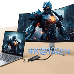 Port HDMI1 w hubie Baseus Metal Gleam II obsługuje obraz 4K przy 120Hz, co oznacza niezwykle płynne i ostre odwzorowanie detali – idealne dla graczy, grafików i profesjonalistów pracujących z multimediami.