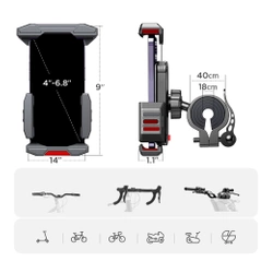 - Puoi montarlo su bicicletta, scooter, moto, tapis roulant o carrozzina . Il morsetto è compatibile con manubri e manopole con un diametro di 15-40 mm