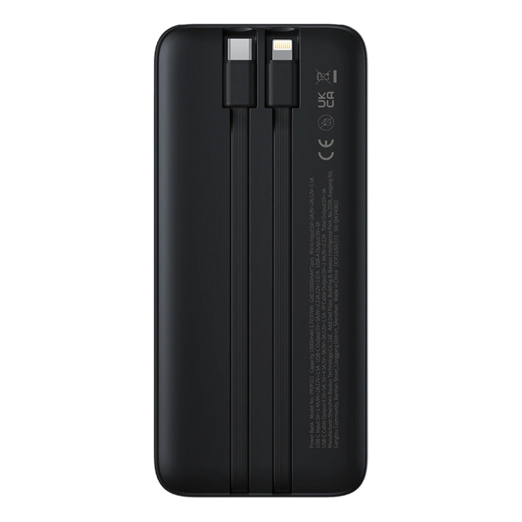 • Powerbank Baseus Lipow 10000mAh 22.5W z podwójnym wbudowanym kablem z wyświetlaczem (z dodatkowym czarnym kablem Baseus Simple USB-A - USB-C 3A 0,2m) - czarny