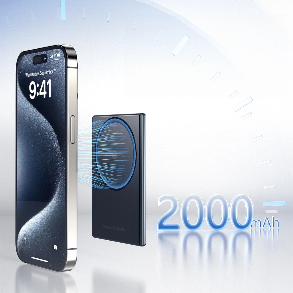 Mit der Choetech SuperThin B708 Powerbank werden Sie nie mit einem leeren Akku dastehen. Dank der induktiven Ladefunktion können Sie Ihr Gerät kabellos über das 5W MagSafe / Qi-Modul aufladen.