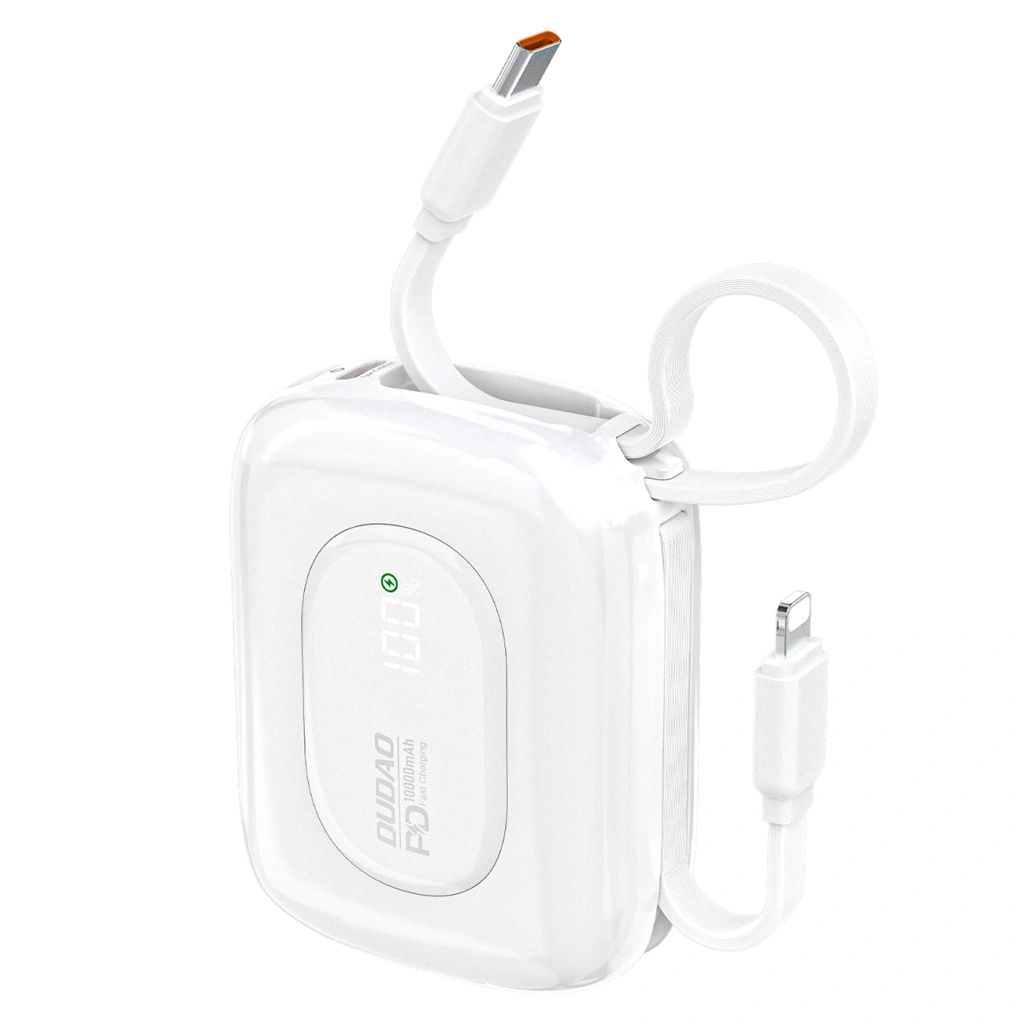 Powerbank Dudao K32 22,5W 10000 mAh z wbudowanym kablem USB-C/Lightning - biały
