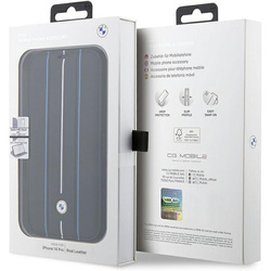 La custodia è decorata con tre strisce disposte verticalmente in un design colorato che ricorda il classico logo BMW. La cucitura delle strisce colorate è molto sottile, ma allo stesso tempo conferisce alla collezione un'eleganza unica e un tocco chic. La collezione è completata da un logo metallico ricamato della casa automobilistica BMW, che conferma l'autenticità del prodotto e ne sottolinea lo stile e il prestigio.