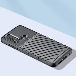 Thunder Case è una custodia resistente con finiture eleganti. Una custodia realizzata con materiali di alta qualità ( TPU ) che protegge perfettamente il telefono da cadute, graffi o sporco. Assorbe gli urti e la speciale struttura all'interno dell'accessorio aiuta a distribuire la forza di un impatto. Inoltre, bordi rialzati attorno allo schermo e all'obiettivo della fotocamera e pulsanti ampi e reattivi .