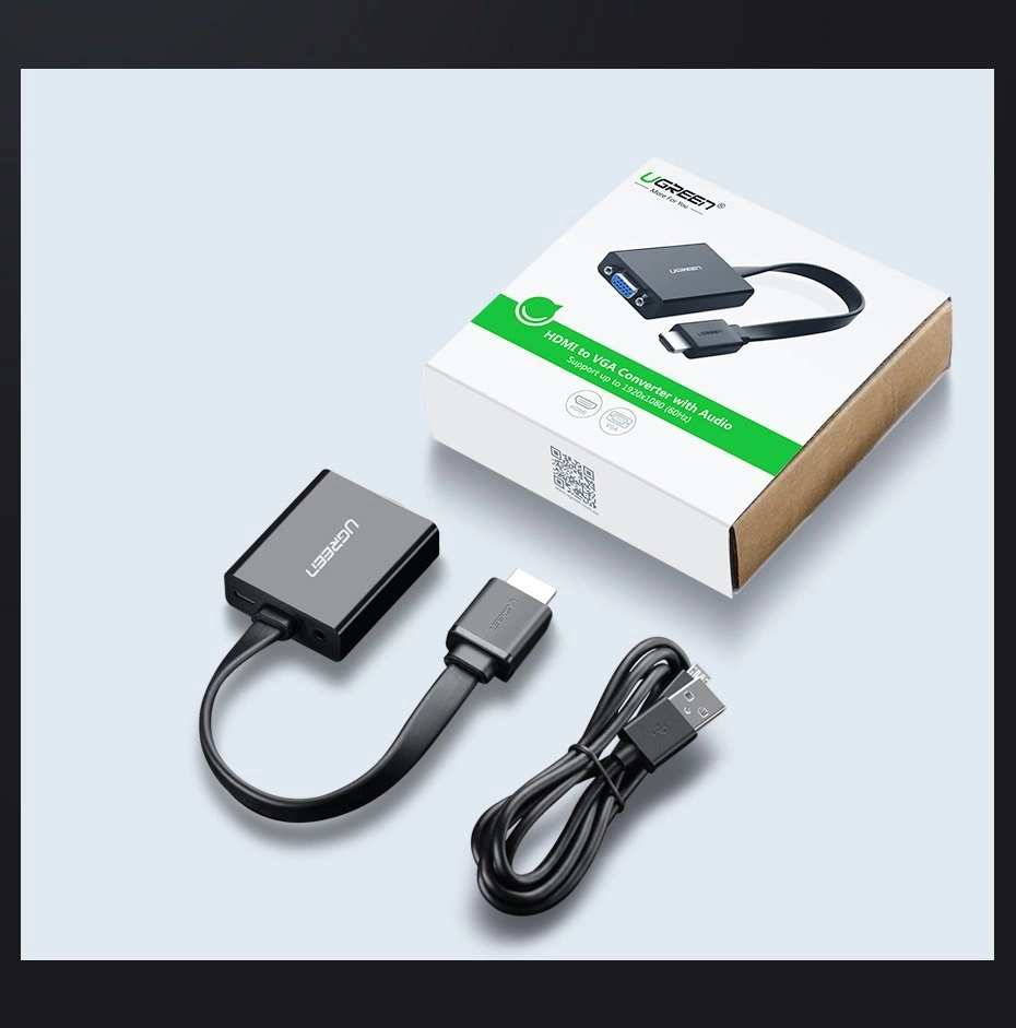 Ugreen HD Converter ist ein Adapter von HDMI auf VGA mit zusätzlichem Micro-USB (für die Stromversorgung) und AUX 3,5 mm Miniklinken-Audioanschlüssen, mit dem Sie neugo Laptop, Konsole oder Media Player an einen älteren Fernseher, Monitor oder Projektor anschließen können. Ein großartiges Gadget, mit dem Sie die neuesten mobilen Geräte an älteren Receivern nutzen können. Sie müssen nicht das neueste Modell eines Fernsehers kaufen, um ein hochwertiges Signal von Ihrem Notebook zu übertragen.