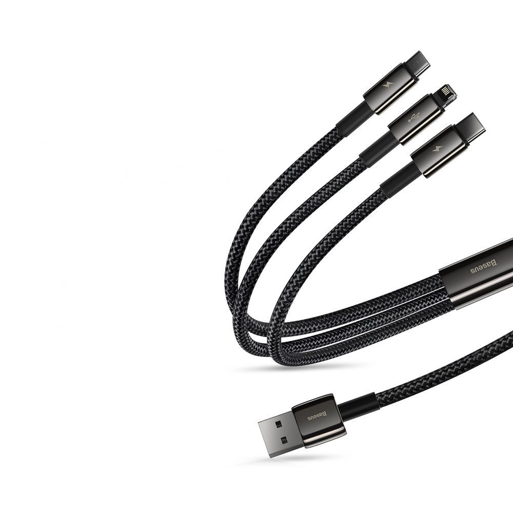• Baseus Tungsten 3in1 USB-Kabel - USB Typ C / Lightning / Micro-USB 3,5 A 1,5 m schwarz (CAMLTWJ-01)