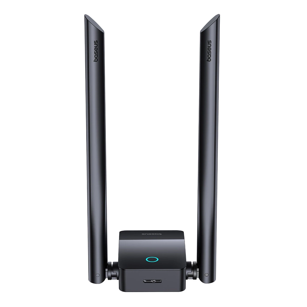 Konstrukcja urządzenia pozwala na regulację kąta ustawienia anten w szerokim zakresie. Zysk energetyczny anteny sięgający 5 dBi sprawia, że karta radzi sobie świetnie nawet w pomieszczeniach oddzielonych ścianami od punktu dostępowego WiFi. Dzięki dołączonemu kablowi USB o długości 1 m możesz ustawić kartę Baseus w takim miejscu, które pozwoli na jeszcze lepszy odbiór sygnału.