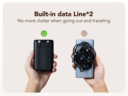 Power bank 10 000mAh z portami: wyjściowy USB-A 22.5W)i dwa wejściowe (USB-C 18W, Lightning 18W) oraz wbudowanymi 2 kablami (wyjściowy Lightning 20W i wejściowy / wyjściowy USB-C 18W/20W) nadaje się do bezpośredniego użytku z większością najnowszych urządzeń na rynku. Inteligentny system zapobiega przeładowaniu, przepięciu, nadprądowej i zwarciu urządzeń.