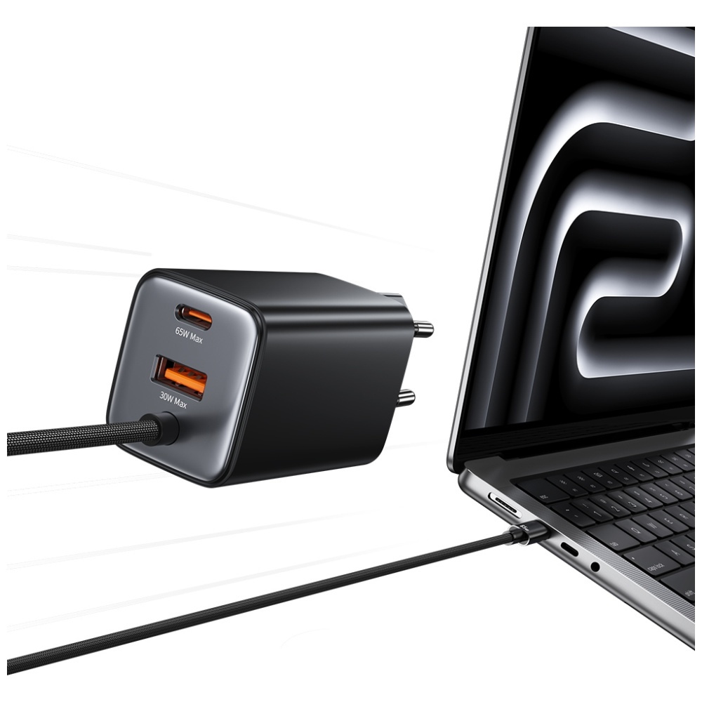 • Ładowarka sieciowa USAMS JC Series CC266 65W GaN Fast Charger 2xUSB-C 1xUSB-A czarny