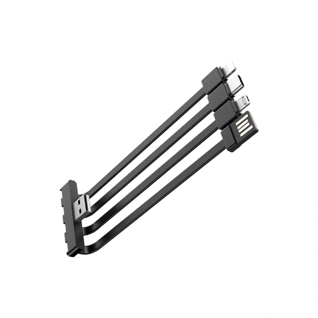 - Wszystko, czego potrzebujesz, znajduje się w jednym urządzeniu. Wbudowane kable (USB-A, USB-C, Lightning, micro USB) oszczędzają miejsce i eliminują potrzebę noszenia dodatkowych akcesoriów.