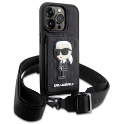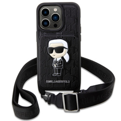 Hülle Karl Lagerfeld KLHCP14LCSAKHPKK iPhone 14 Pro 6.1" hartcase schwarz/schwarz Crossbody Saffiano Monogramm Ikonik Case