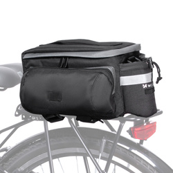 Wozinsky compact rear rack bag made of high-quality water-resistant material - polyester. Can be used as a standard rack bag, a sling bag, and even a handbag. 4 velcro straps make it easy to attach to all types of racks. This multifunctional pannier bag has multiple pockets, bottle holder and 6 L capacity. Also, reflective straps that increasing the safety of night cycling. Perfect gear for every cyclist.